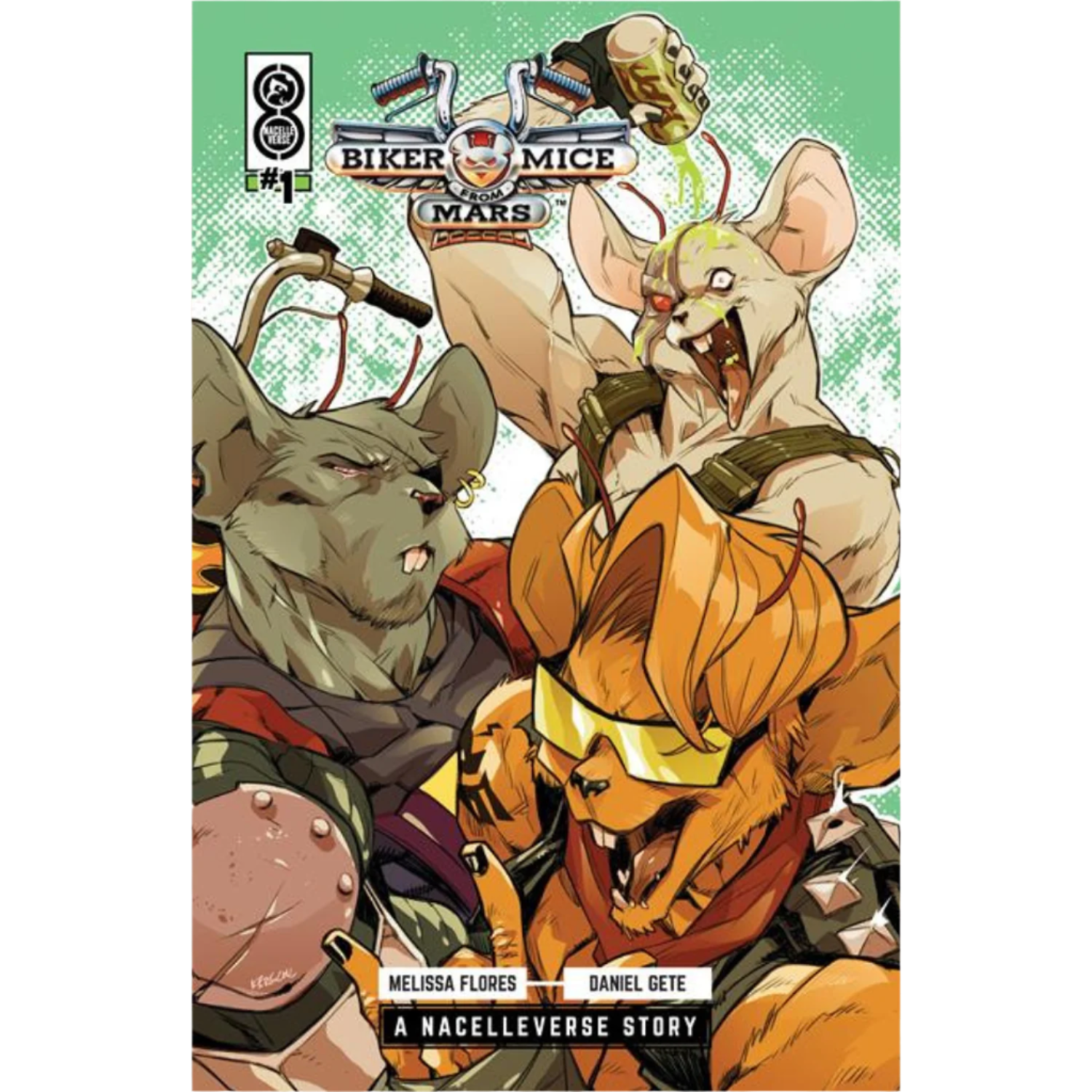 Hot on the heels—or in this case- wheels—of last year’s breakout limited series from the Nacelle Company and Oni Press- the most radical animation icons to ever ride across the Elysium Plains—aka the BIKER MICE FROM MARS—are back and revvin’ it up in their FIRST-EVER ONGOING SERIES from the genre-bending imagination of writer Melissa Flores (Power Rangers Prime) and penciling-and-inking powerhouse Daniel Gete (Skin Police)! The Red Planet is in revolt . . . and hard-charging rebels Throttle- Vinnie- and Modo are joining up with Mars’ Freedom Fighters to fight the invading army of alien Plutarkian invaders. But when a new- entirely unexpected threat to Mars rears its ugly head- threatening the existence of their families- friends- and the fourth planet itself- will the Biker Mice’s war become a full-fledged apocalypse? Don't miss the adventures of everybody's favorite revolutionary rodent trio coupled with the return of RoboForce in an all-new back-up feature by writer Matt Hotson (Power Rangers: The Return) and artist EJ Su (Transformers) that will rock the foundations and set the stage for the future of the Nacelleverse!