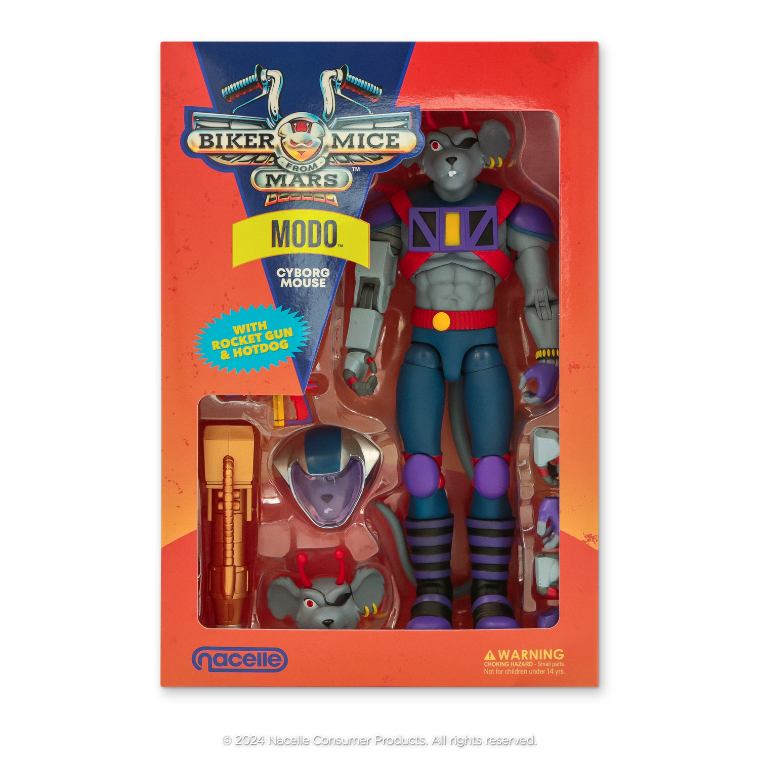 Are you ready to rock out into battle with Modo? - the one-mouse army with a heart of gold! He may not be the quickest thinker around, but Modo more than makes up for it with his bionic arm and rocket gun. Standing at almost 8 inches tall, this Modo action figure is a must-have for any true fan of the classic animated series. This fully articulated figure is perfect for recreating all your favorite moments from the show. So, if you're ready to add some serious firepower to your Biker Mice From Mars collection, don't miss out on this mind-blowing Modo action figure!