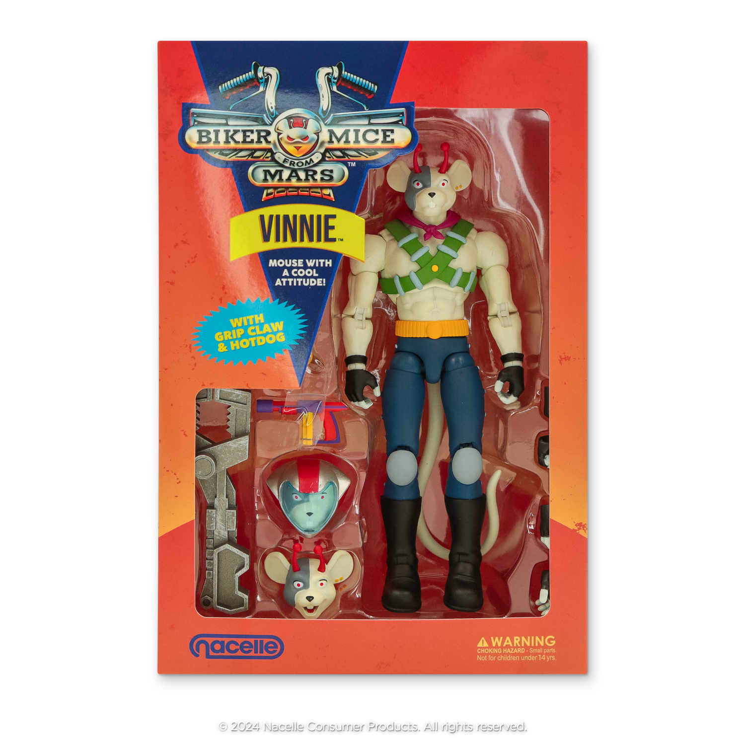 Get ready to blast off into action with the fiercely loyal biker mouse, Vinnie! With his quick temper, unwavering dedication to his biker buddies and his Grip Claw accessory Vinnie is always ready to handle any situation that comes his way. Standing just under 7 inches tall, this Vinnie action figure is a must-have for any true fan of the classic animated series. This fully articulated figure captures every detail of Vinnie's unique personality and style. So, if you're ready to join Vinnie and the rest of the Biker Mice on their wild adventures, then don't miss out on this mind-blowing addition to your collection!