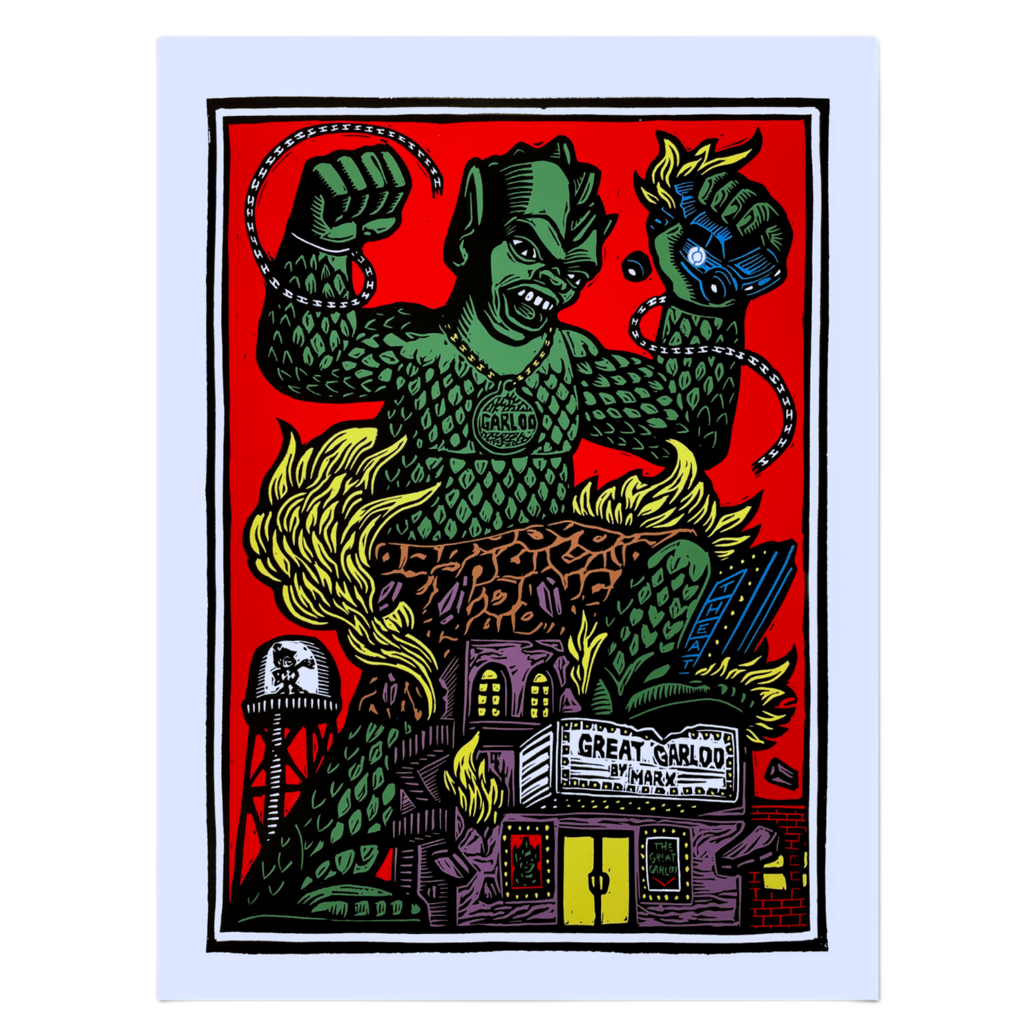Brian Reedy's stunning GREAT GARLOO original art is now available in vibrant, screen-printed color on premium poster stock.