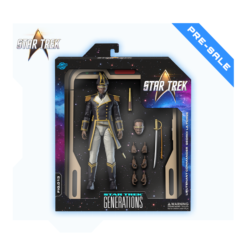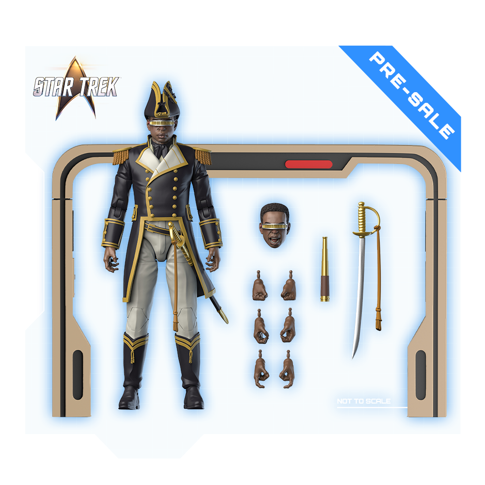 Regresa a alta mar con nuestra segunda figura de acción de simulación de velero de Star Trek: Generations : ¡el Teniente Comandante Geordi La Forge! Junto con el catalejo y el uniforme de marinero de esta figura de acción a escala 1/10, comienza a construir tu propia holocubierta a escala con el accesorio de arco de holocubierta altamente articulado, diseñado para conectar con objetos de futuras entregas de esta mini-oleada de figuras de Generations .