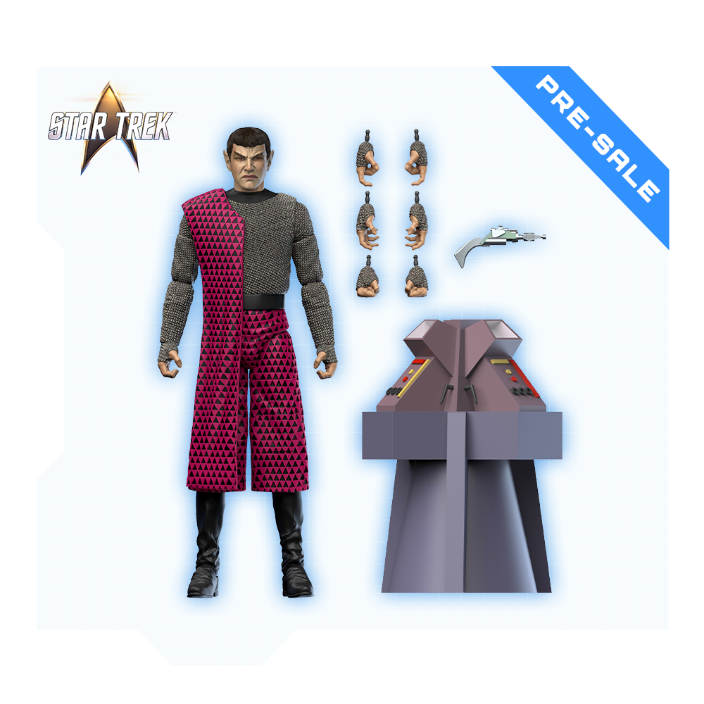Al final de la historia se encuentra el país desconocido, ¡donde te espera la traidora teniente Valeris! La joven vulcana protegida del capitán Spock llega como una figura articulada a escala 1/10, con varios artefactos de su misión en el USS Enterprise-A: un fáser y un comunicador de la Flota Estelar, la ornamentada copa vulcana de los aposentos de Spock, una incriminatoria bota de gravedad utilizada en el asesinato del canciller klingon Gorkon... y, por supuesto, una olla de puré de patatas para practicar tiro al blanco.