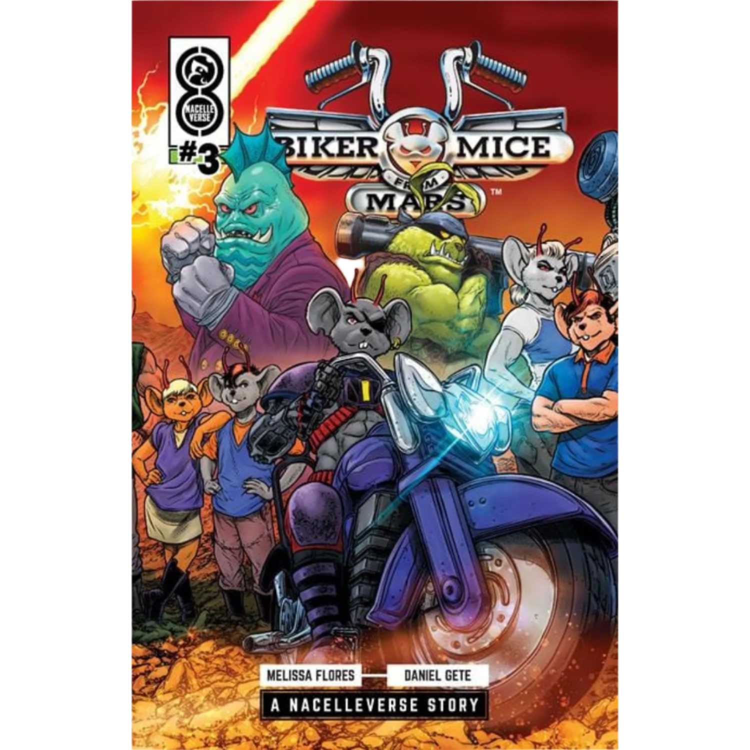 Hot on the heels—or in this case- wheels—of last year’s breakout limited series from the Nacelle Company and Oni Press- the most radical animation icons to ever ride across the Elysium Plains—aka the BIKER MICE FROM MARS—are back and revvin’ it up in their FIRST-EVER ONGOING SERIES from the genre-bending imagination of writer Melissa Flores (Power Rangers Prime) and penciling-and-inking powerhouse Daniel Gete (Skin Police)! The Red Planet is in revolt . . . and hard-charging rebels Throttle- Vinnie- and Modo are joining up with Mars’ Freedom Fighters to fight the invading army of alien Plutarkian invaders. But when a new- entirely unexpected threat to Mars rears its ugly head- threatening the existence of their families- friends- and the fourth planet itself- will the Biker Mice’s war become a full-fledged apocalypse? Don't miss the adventures of everybody's favorite revolutionary rodent trio coupled with the return of RoboForce in an all-new back-up feature by writer Matt Hotson (Power Rangers: The Return) and artist EJ Su (Transformers) that will rock the foundations and set the stage for the future of the Nacelleverse!