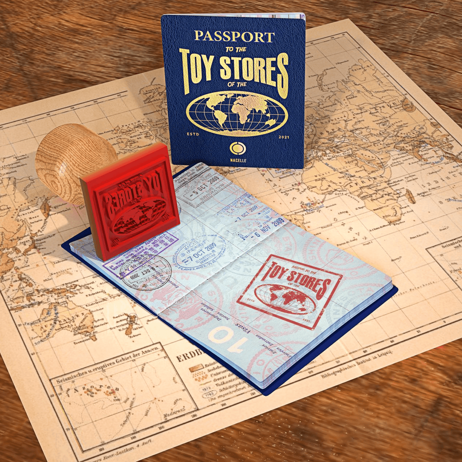Introducing the Nacelle Toy Stores of the World Passport, your passport to a world of incredible toy stores! These authentic, stitched passport booklets are available at participating Nacelle Consumer Products partner stores. Present your Toy Stores of the World Passport at any other participating Nacelle consumer product partner store and receive a new unique stamp! There's an ever-growing world of incredible toy stores out there, and now you can record your journey in style!