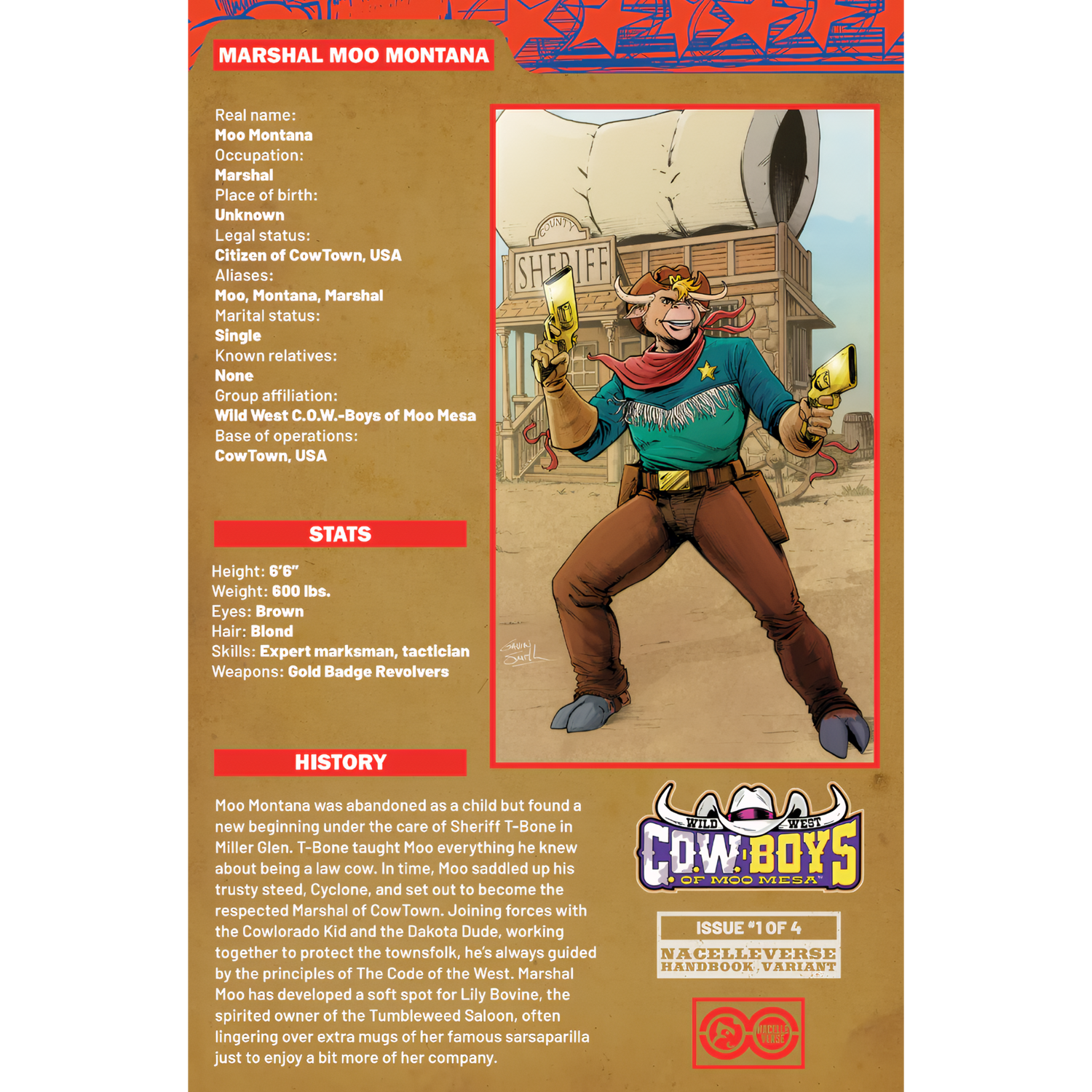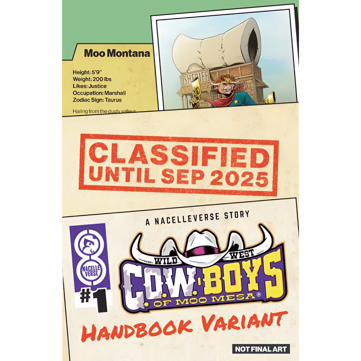 Baserad på den klassiska animerade serien och deras glödheta serie av samlarleksaker är COW-Boys från Moo Mesa TILLBAKA och redo att rida mot en helt ny uppgörelse vid gränsen mellan den glödhete författaren Matt Hotson (Power Rangers: The Return) och storfilmsartisten Juan Gedeon (DC: The Jurassic League)! Innan han tar emot märket, rider du in i den laglösa gränsstaden Moo Mesa där vi möter marskalk Moo Montana i hans tidigaste äventyr! I en tid präglad av rädsla och osäkerhet genomsyrar oordning öknen, och dess invånare har börjat försvinna – inklusive Moos tidigare mentor, den respekterade sheriffen Mary Quine. Med skuggor som växer över mesan måste Moo navigera gamla agg, nya allianser och en konspiration som når djupt in i hjärtat av mesans förflutna. Följ Moo Montana, Dakota Dude, Cowlamity Kate och fler in i en saga om rättvisa, mystik och försoning i en värld där heder bär hatt och rider på häst. Detta är Moo Mesa som du aldrig sett det förut – djupare och mer vågat. Sadeln upp!